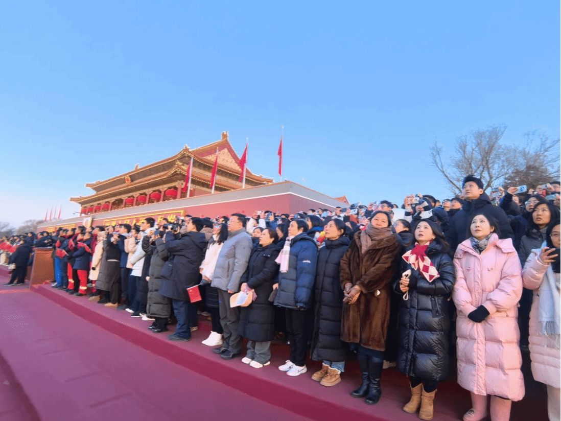 在新年晨曦中,于天安门观礼台亲历五星红旗冉冉升起,国歌激昂,心潮澎湃。我深感这抹鲜红不仅象征着国运昌隆,更承载着安全重任。身处伟大祖国的心脏,这份震撼将时刻激励我精进专业,坚守宣传总体国家安全观的初心使命,以青年之声守护家国安宁,让青春在为维护国家安全、筑牢人民防线的实践中绽放光彩。
